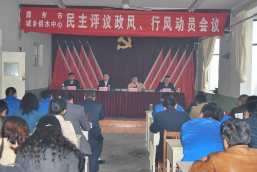 為動員廣大干部職工積極開展民主評議政風行風活動,增強服務意識,規范服務行為,全面提高供水服務水平和服務質量,進一步鞏固和提升供水行業的良好社會形象,近日中心召開民主評議政風行風動員會議,中心中層以上干部參加會議。