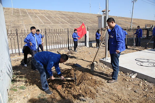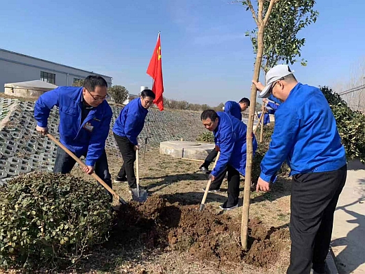 各支部黨員干部70余人來到馬河水庫、荊泉水源地、第三加壓水廠、羊莊水源廠,領工具、拿樹苗、選地整地,大家手持鐵鍬,干勁十足,經過一上午的努力,栽種樹苗100余棵,為大地增添了綠色,發揮了黨員干部先鋒帶頭作用。