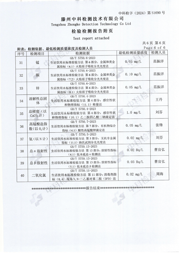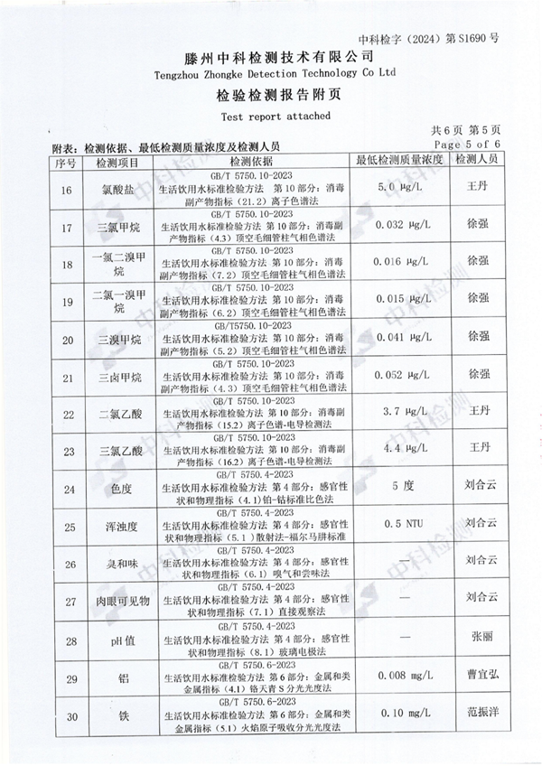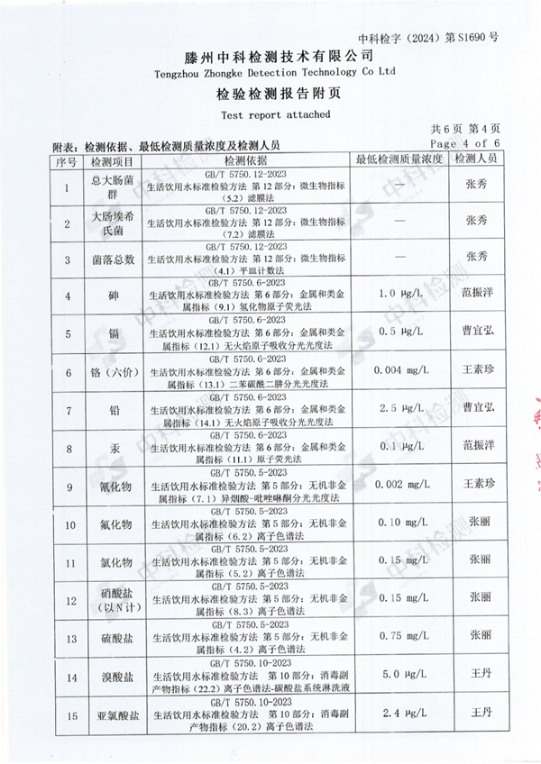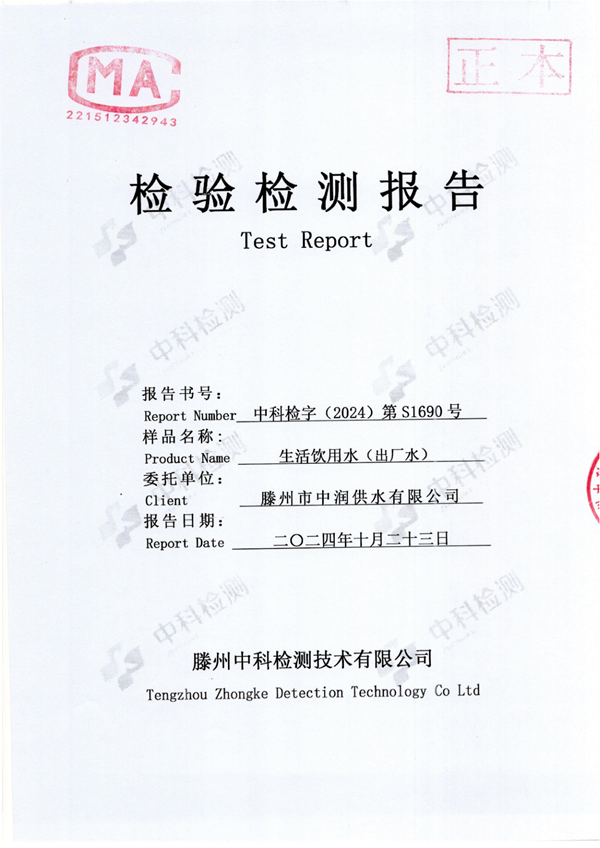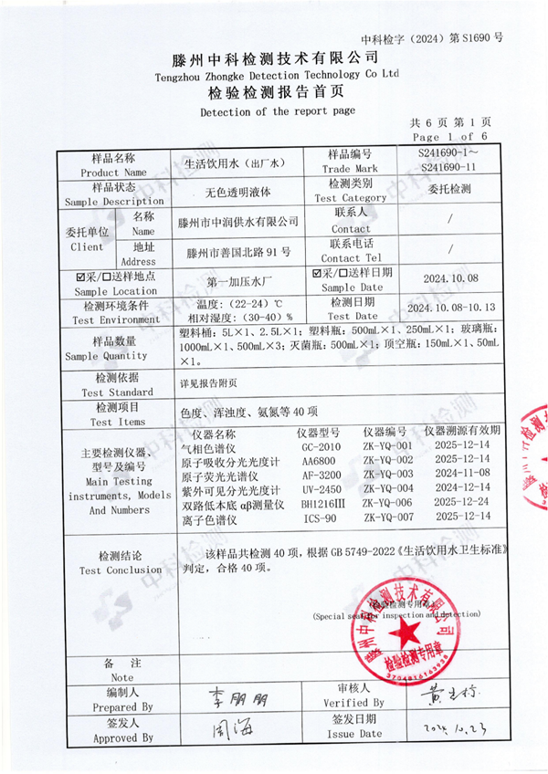2024年10月份生活飲用水水質報告(出廠水)