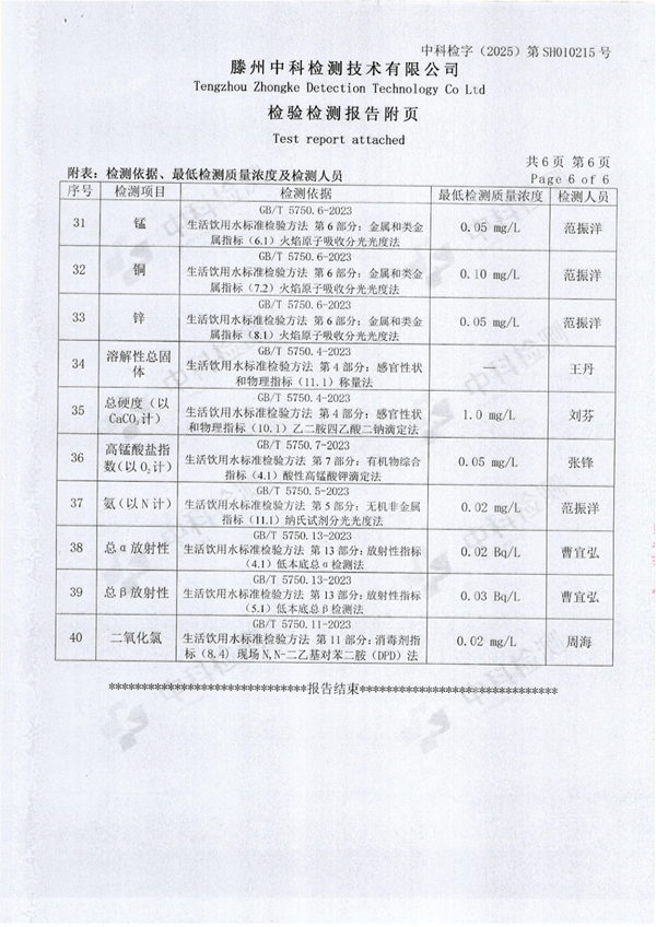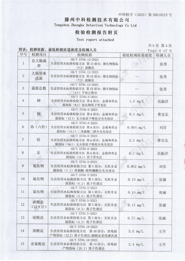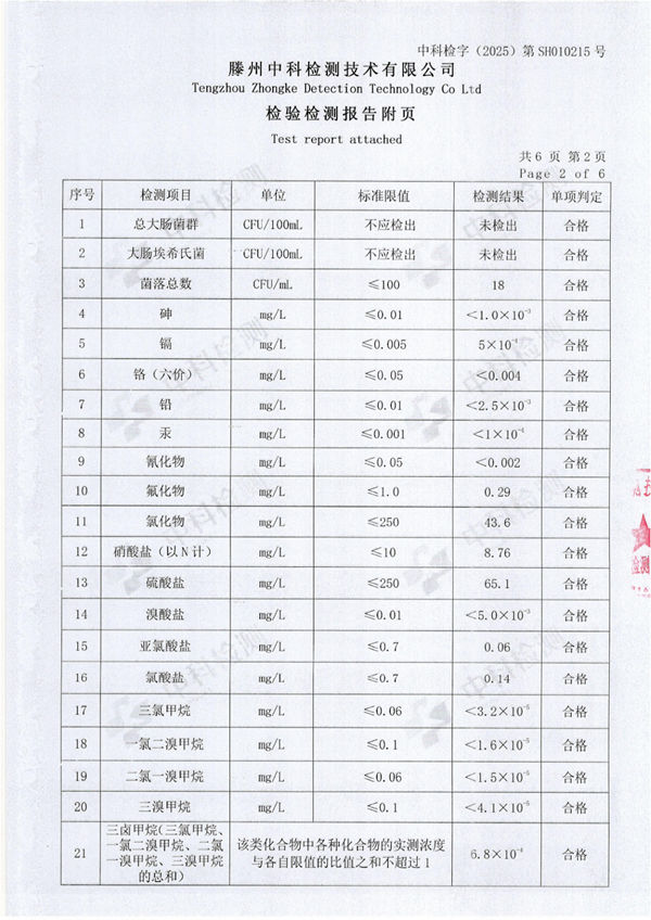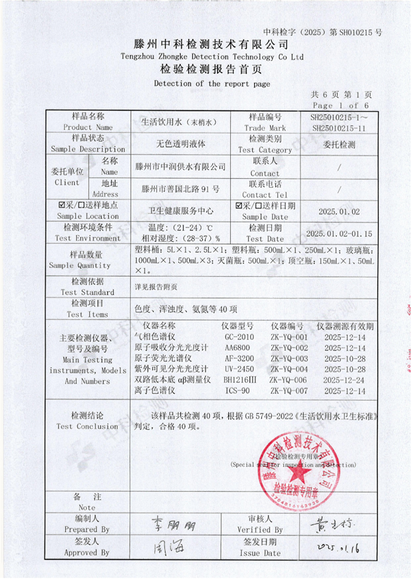 2025年1月份生活飲用水水質(zhì)報(bào)告(末梢水)