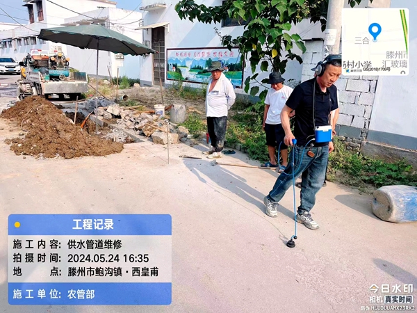 5月24日下午,市水務發展集團中潤供水有限公司接到群眾反映,鮑溝鎮西皇甫村水壓低,無法正常用水。險情就是命令,搶修就是責任,中潤供水維修人員第一時間前往現場進行處置。